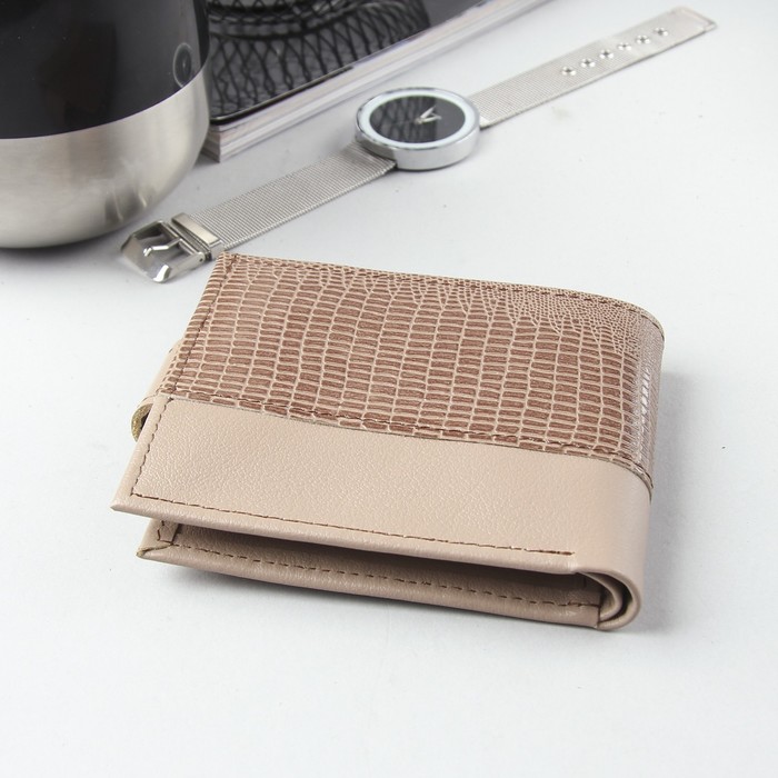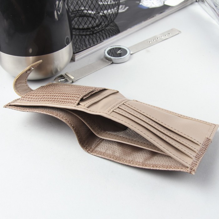 Кошелек женский, 2 отдела, для кредиток, для монет, игуана/флотер, цвет бежевый
