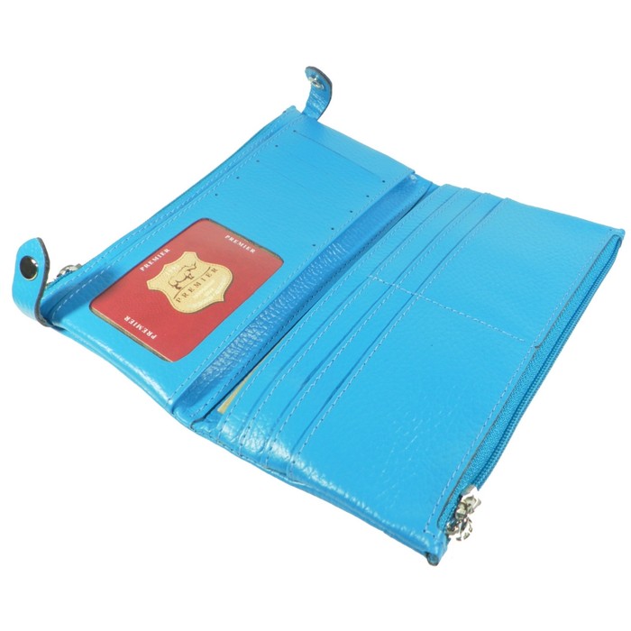 Кошелёк женский, 2 отдела для купюр, для монет, для кредитных карт, цвет голубой