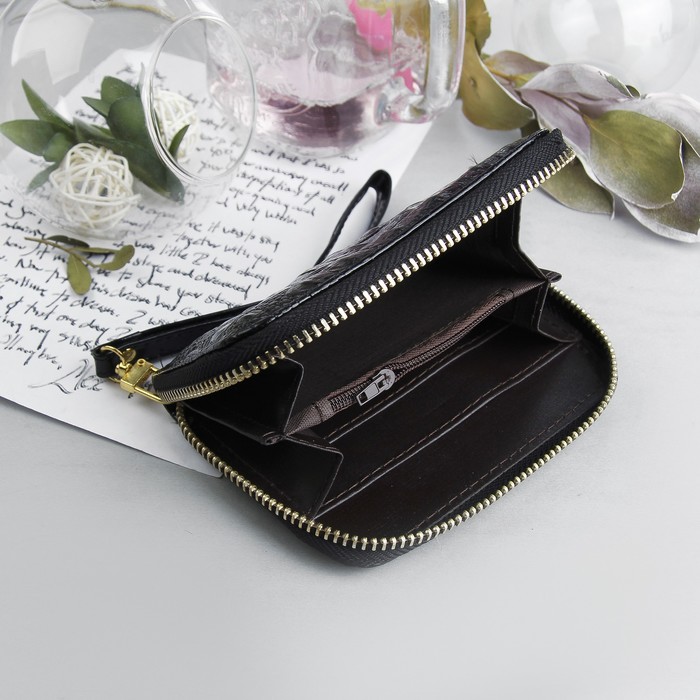 Кошелёк женский, 2 отдела, для монет, для карт, цвет чёрный