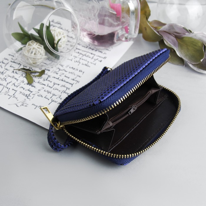 Кошелёк женский, 2 отдела, для монет, для карт, цвет синий