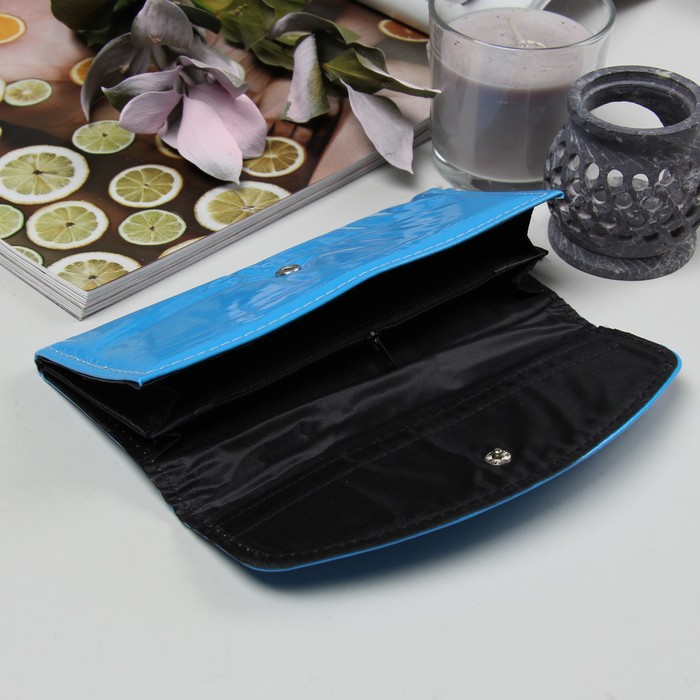 Кошелёк женский, 2 отдела на клапане, для монет, цвет голубой
