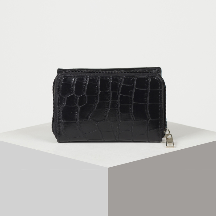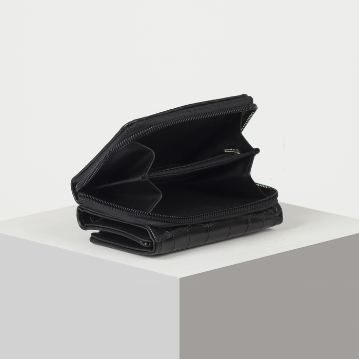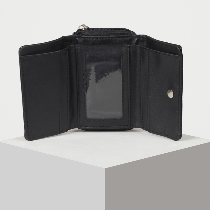 Кошелёк женский, 2 отдела на молнии, 2 отдела, для карт, на клапане, цвет чёрный