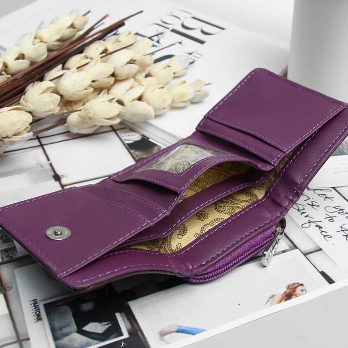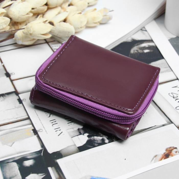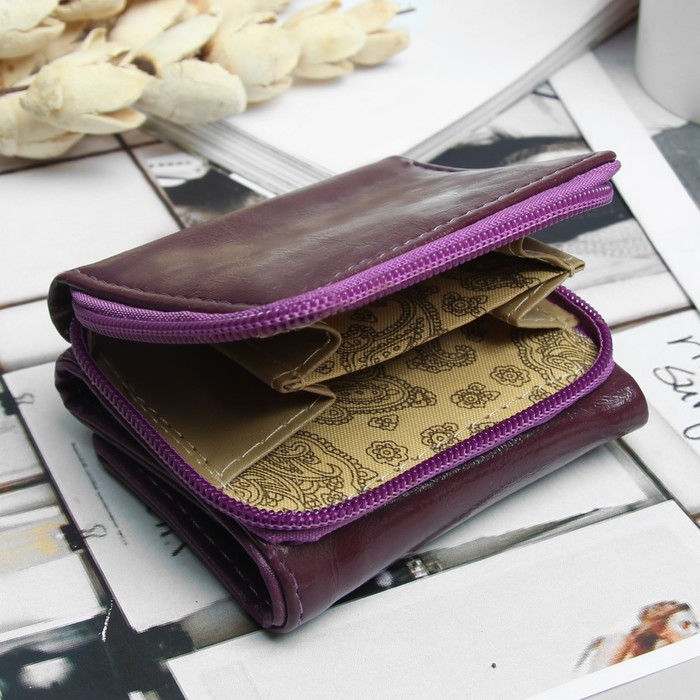 Кошелёк женский, 2 отдела на молнии, 2 отдела, для карт на клапане, цвет фиолетовый