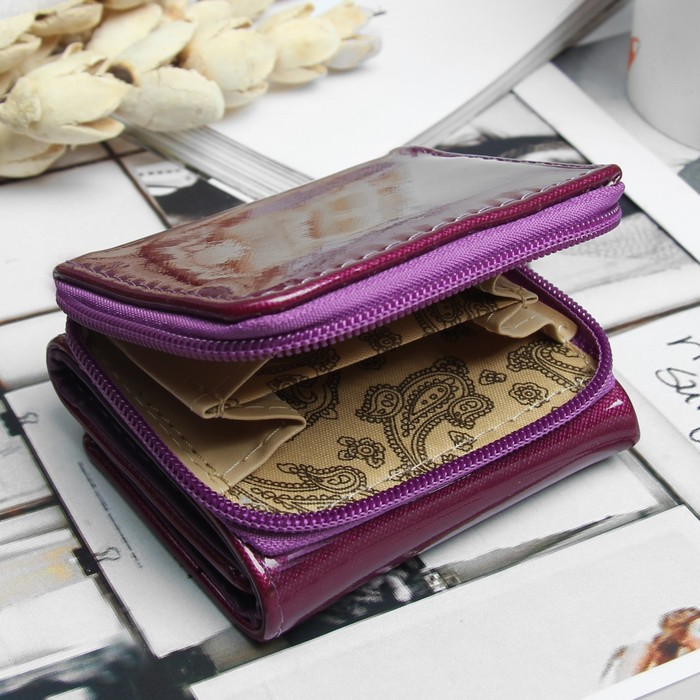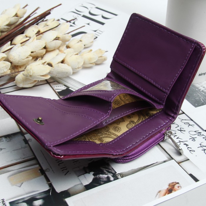 Кошелёк женский, 2 отдела на молнии, 2 отдела, для карт на клапане, цвет фиолетовый