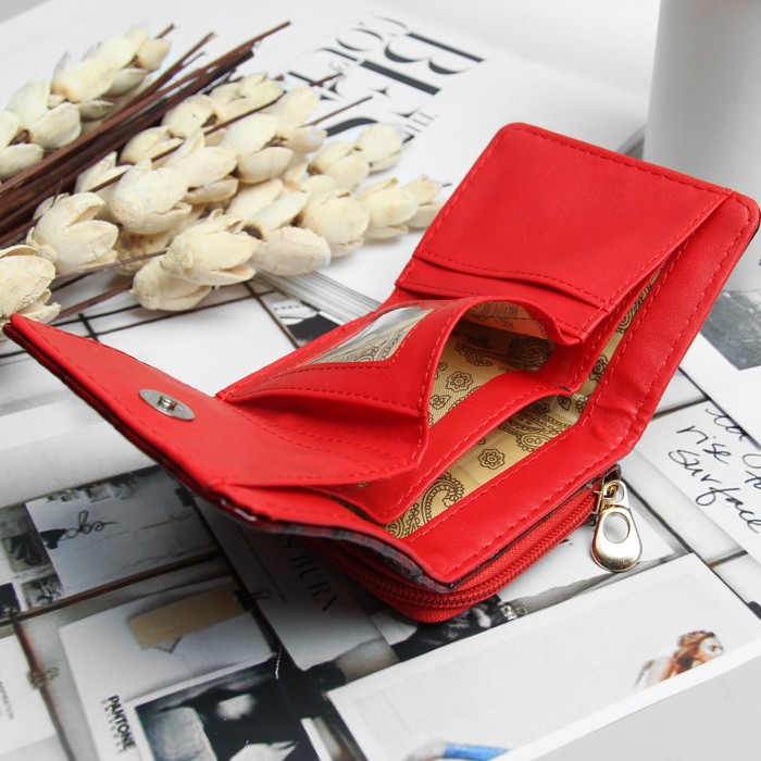 Кошелёк женский, 2 отдела на молнии, 2 отдела, для карт на клапане, цвет красный