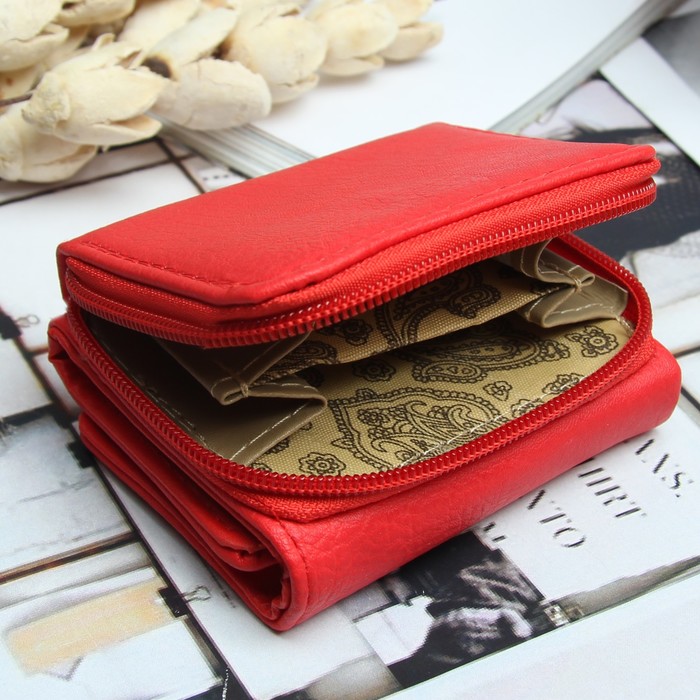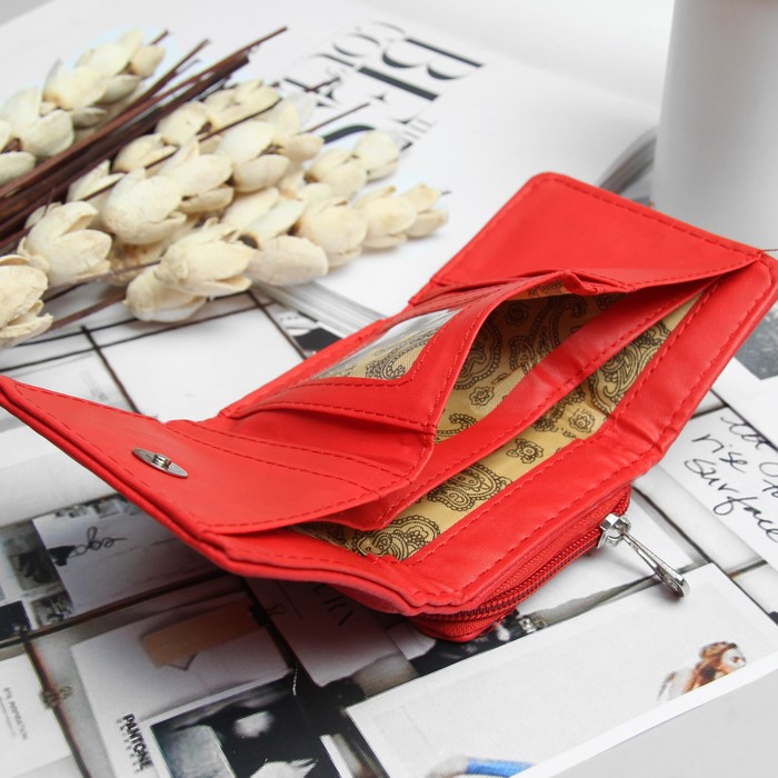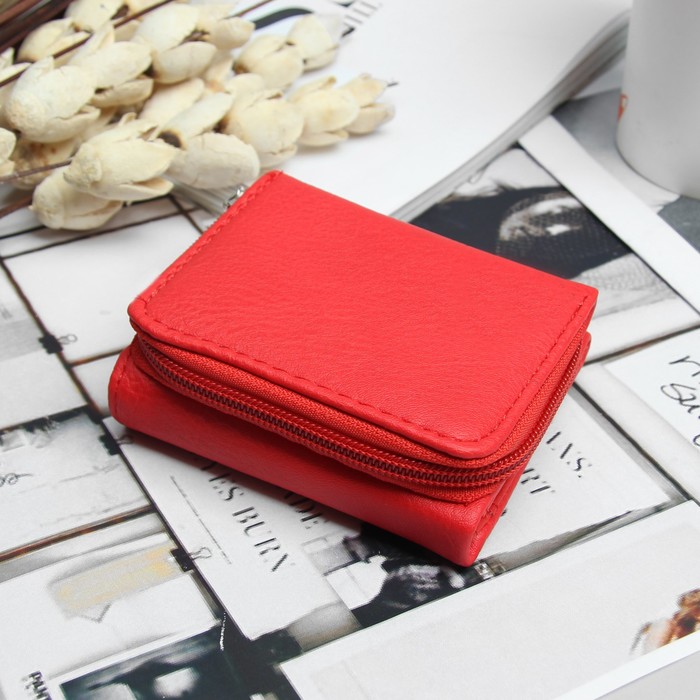 Кошелёк женский, 2 отдела на молнии, 2 отдела, для карт на клапане, цвет красный