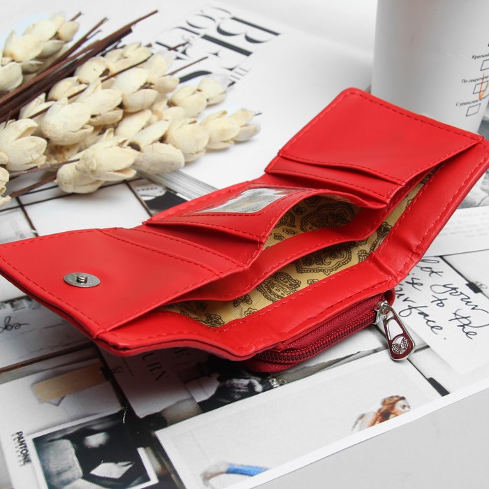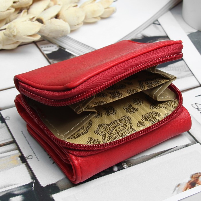 Кошелёк женский, 2 отдела на молнии, 2 отдела, для карт на клапане, цвет красный