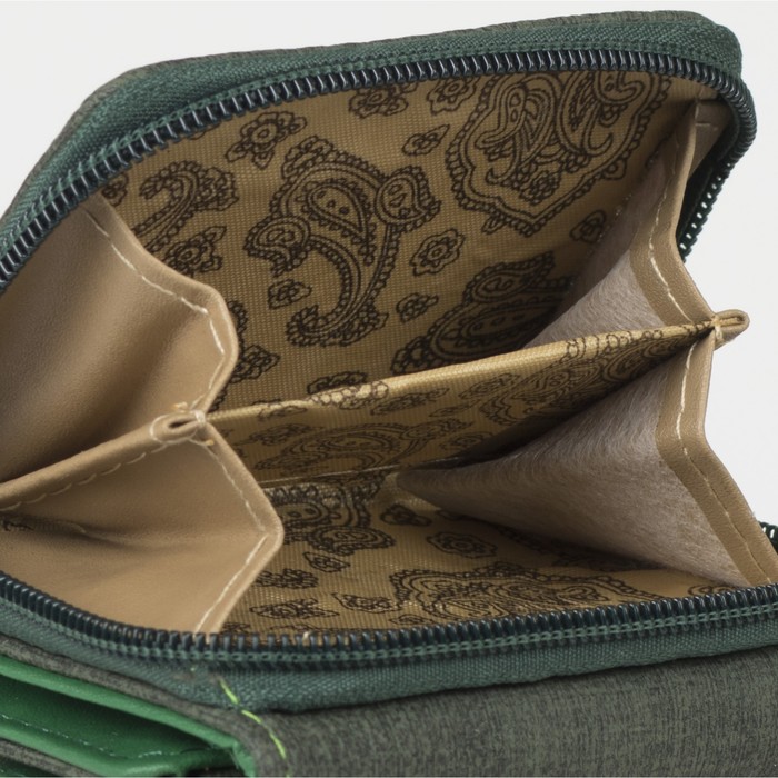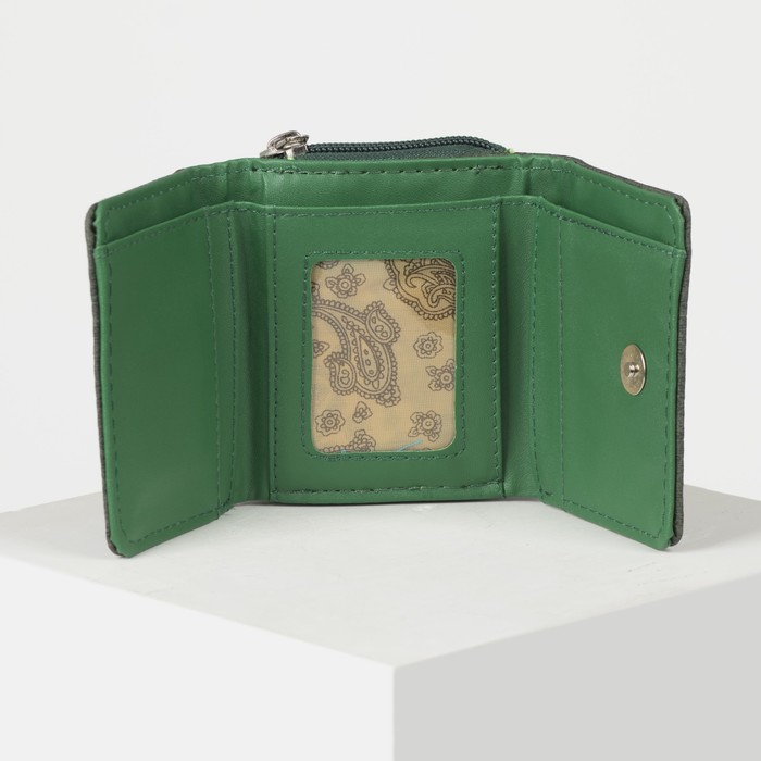Кошелёк женский, 2 отдела на молнии, 2 отдела, для карт на клапане, цвет зелёный