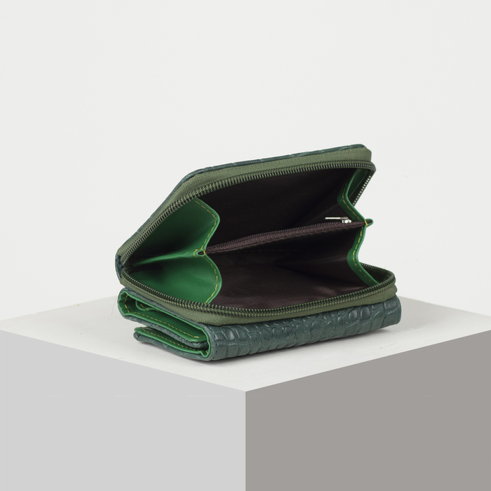 Кошелёк женский, 2 отдела на молнии, 2 отдела, для карт, на клапане, цвет зелёный