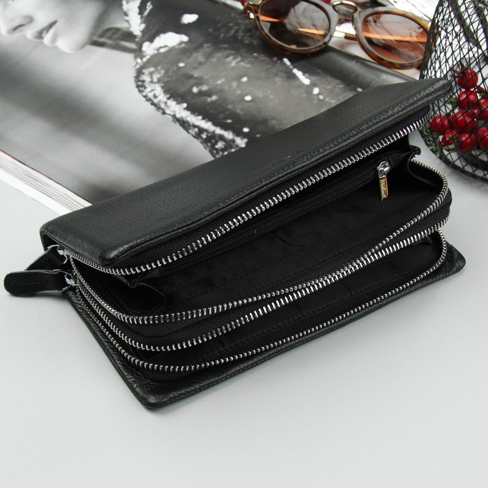 Кошелёк женский, 2 отдела на молниях, хлястик, цвет чёрный