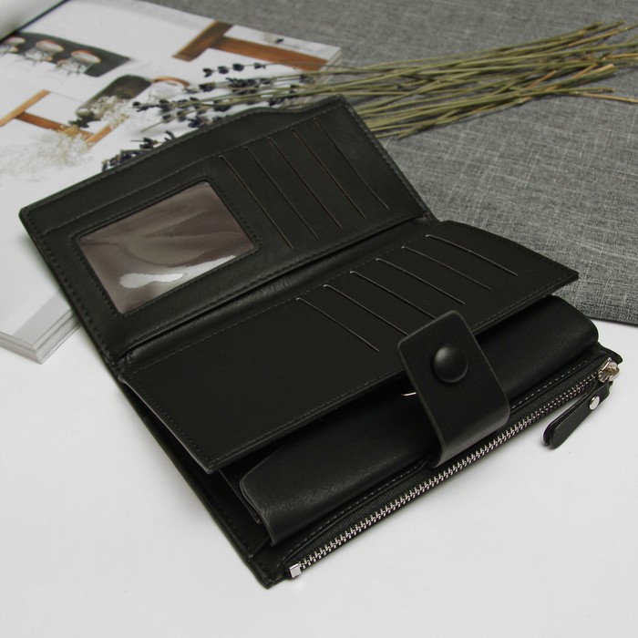 Кошелёк женский, 2 отдела, отдел для карт и монет, наружный карман, цвет чёрный
