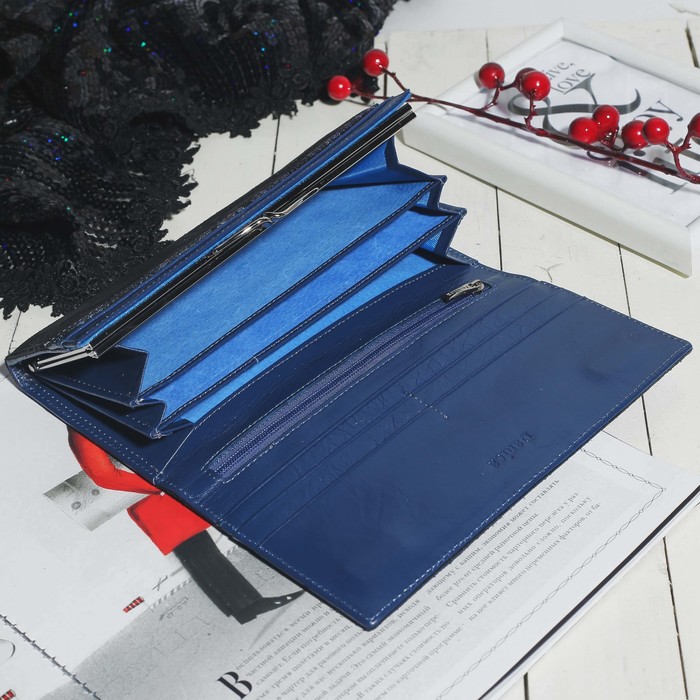 Кошелёк женский, 2 отдела рамка, 2 отдела, для карт на клапане, цвет синий