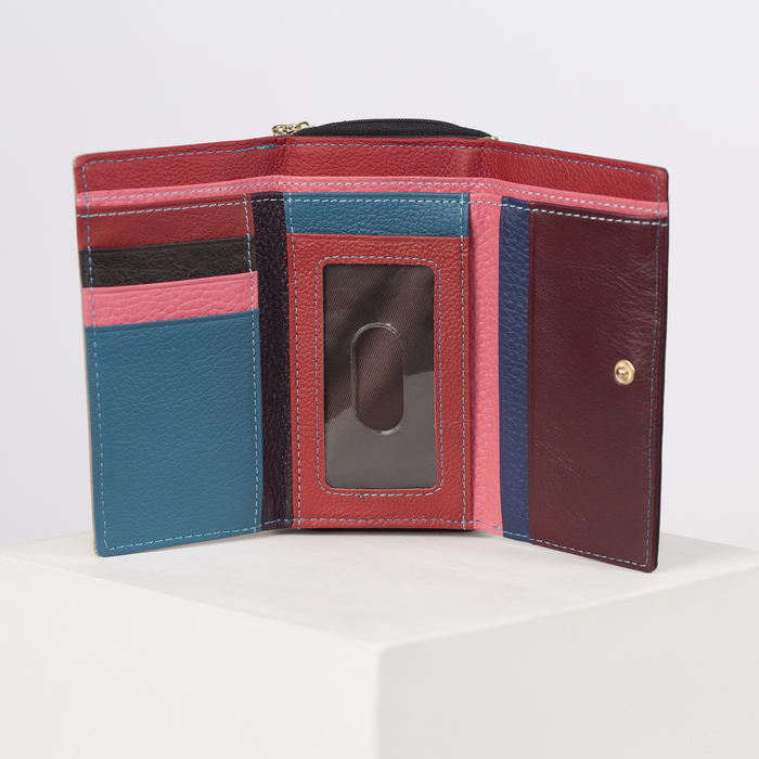 Кошелёк женский, 2 отдела рамка, 2 отдела на молнии, 2 отдела, для карт, для монет, цвет коричневый/чёрный