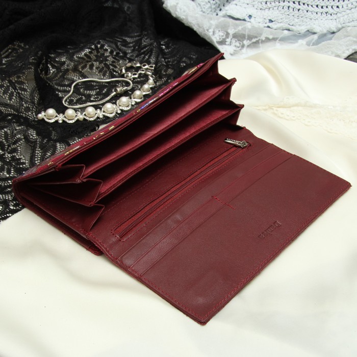 Кошелёк женский, 2 отдела рамка, 3 отдела, для карт, для монет, цвет бордовый