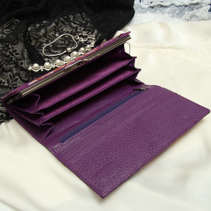 Кошелёк женский, 2 отдела рамка, 3 отдела, для карт, для монет, цвет сиреневый