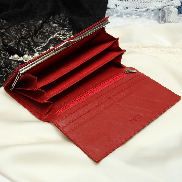 Кошелёк женский, 2 отдела рамка, 3 отдела, для карт, для монет, наружный карман, цвет красный