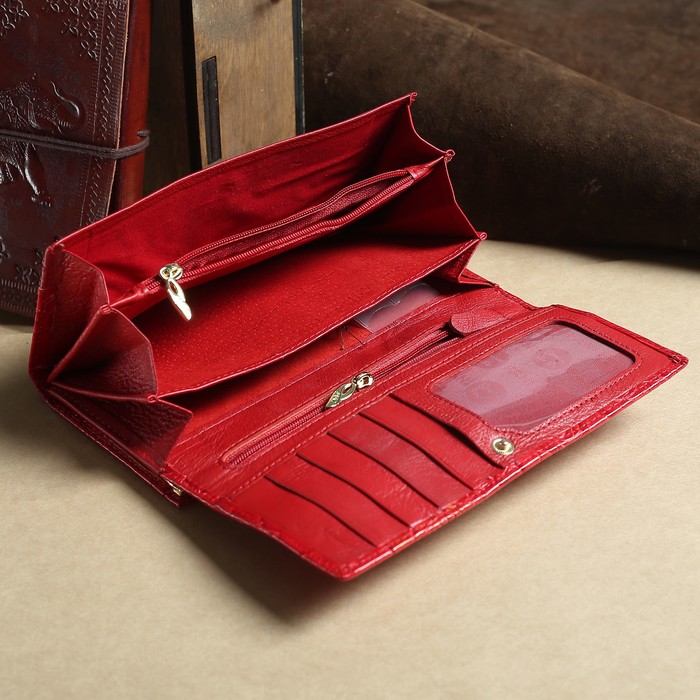 Кошелёк женский, 2 отдела рамка, 3 отдела, для карт, на клапане, цвет красный