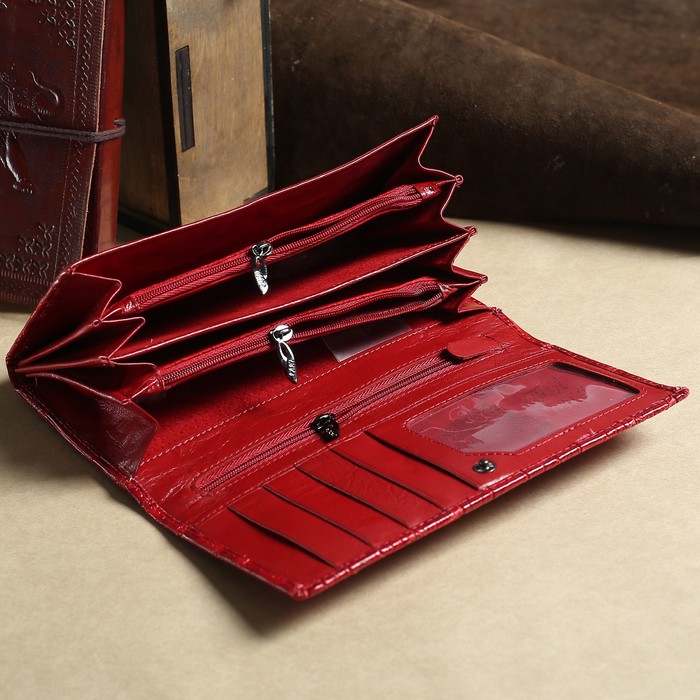 Кошелёк женский, 2 отдела рамка, 3 отдела, для карт, на клапане, наружный карман, цвет красный