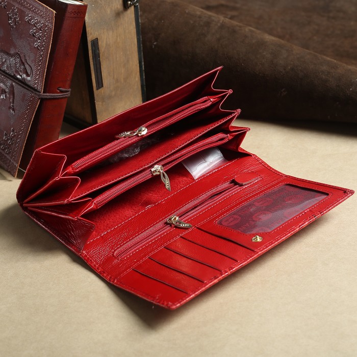 Кошелёк женский, 2 отдела рамка, 3 отдела, для карт, на клапане, наружный карман, цвет красный