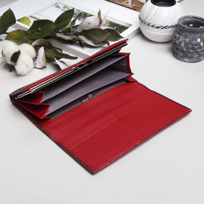 Кошелёк женский, 2 отдела рамка, 4 отдела для карт, цвет красный