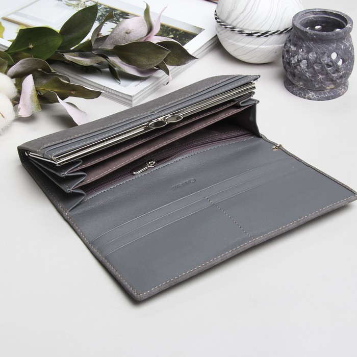 Кошелёк женский, 2 отдела рамка, 4 отдела для карт, цвет серый