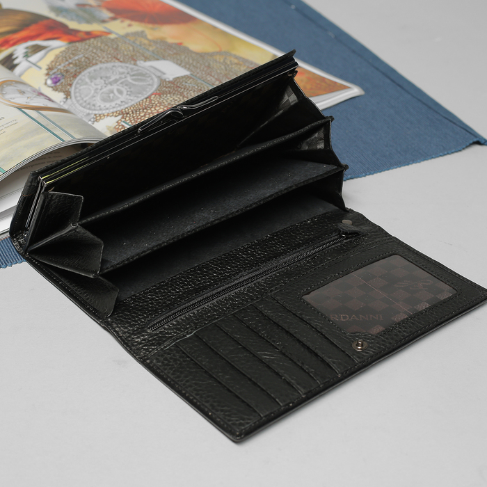 Кошелёк женский, 2 отдела рамка, 4 отдела, для карт, для монет, наружный карман, цвет чёрный