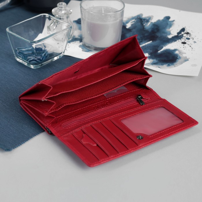 Кошелёк женский, 2 отдела рамка, 4 отдела, для карт на клапане, цвет красный