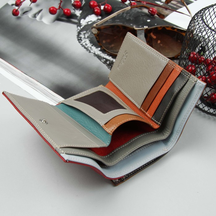 Кошелёк женский, 3 отдела, для карт, для монет, бордо/рыжий