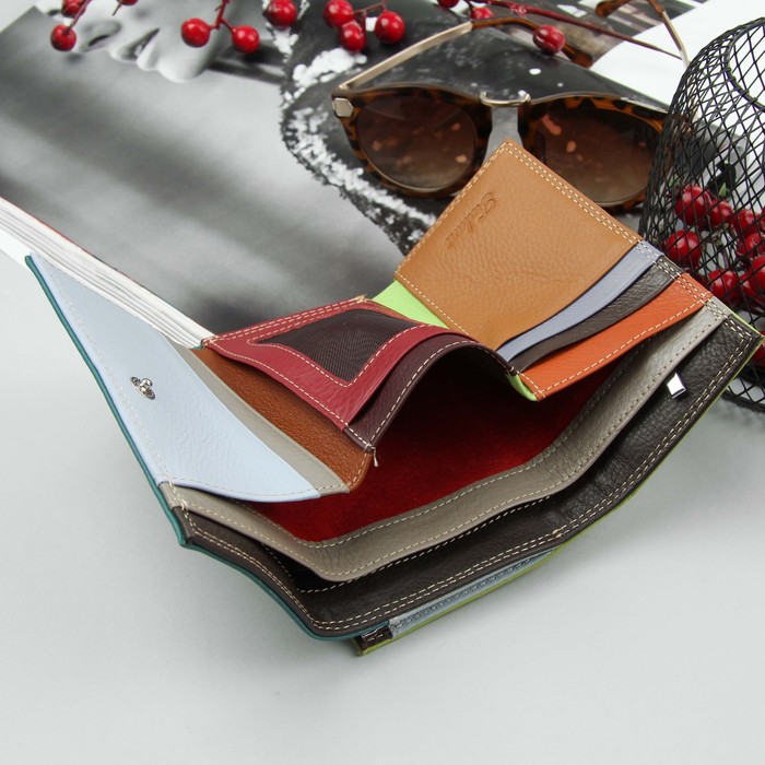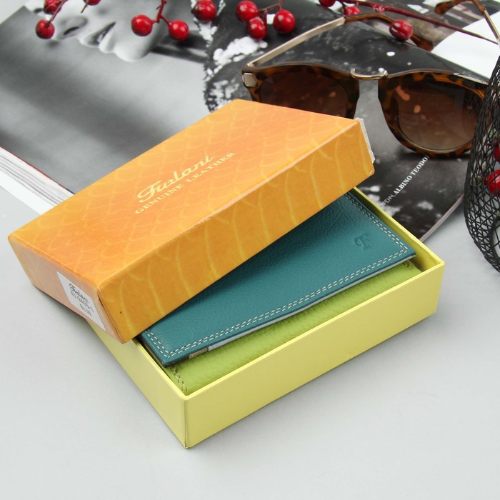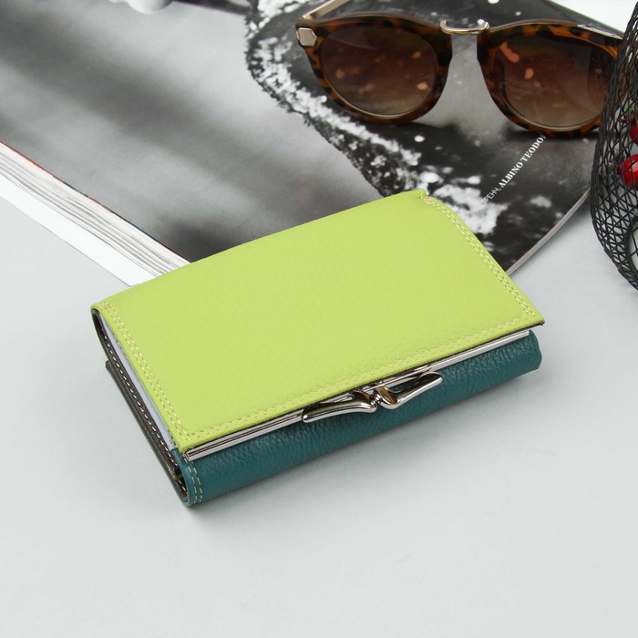 Кошелёк женский, 3 отдела, для карт, для монет, цвет бирюзовый/зелёный