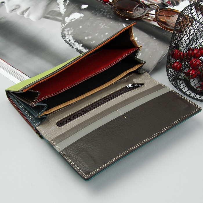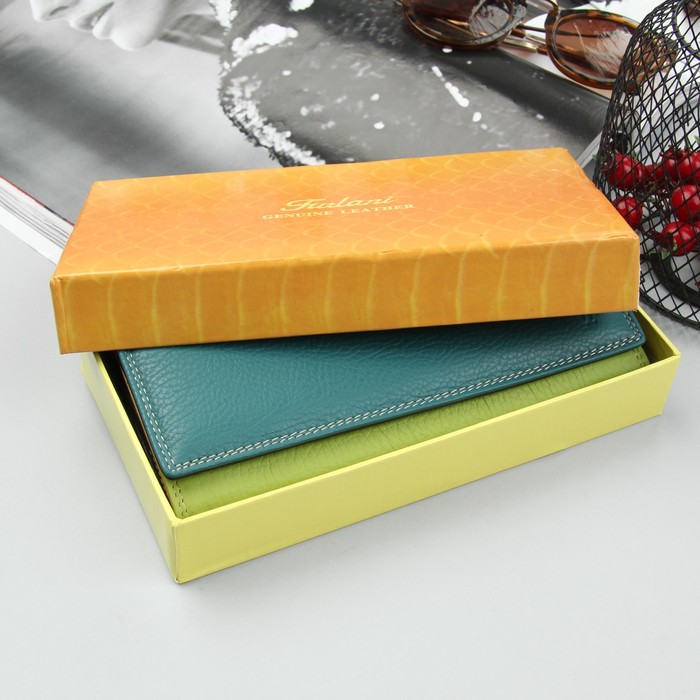 Кошелёк женский, 3 отдела, для карт, для монет, цвет бирюзовый/зелёный