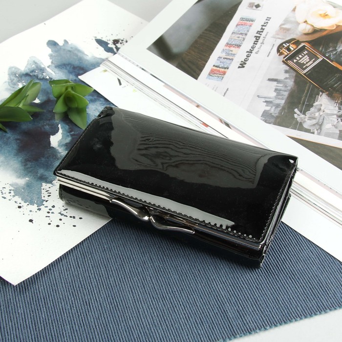 Кошелёк женский, 3 отдела, для карт, для монет, цвет чёрный
