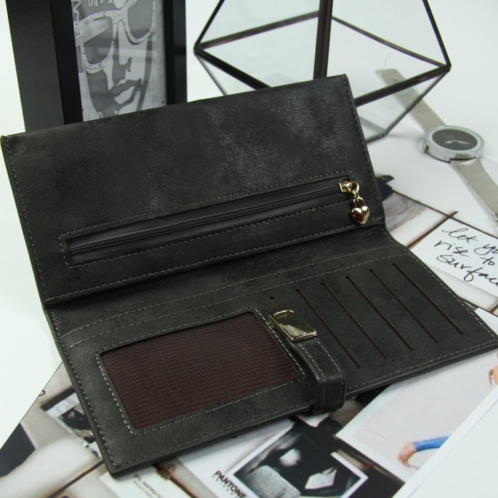 Кошелёк женский, 3 отдела, для карт, для монет, цвет чёрный