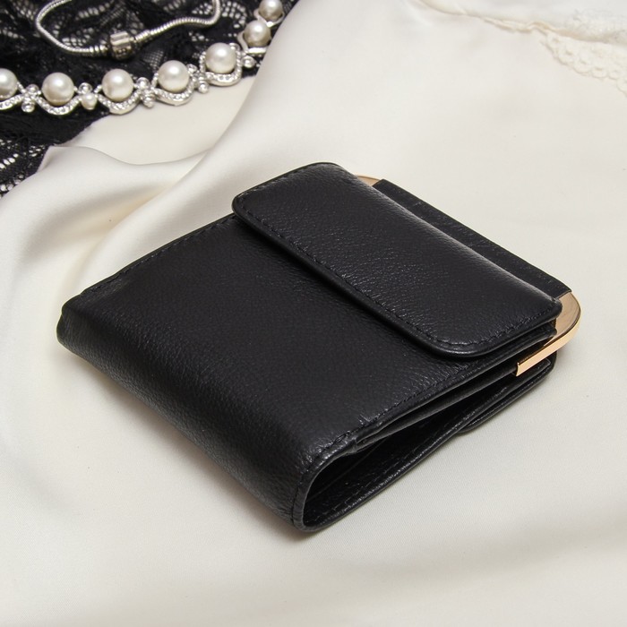 Кошелёк женский, 3 отдела, для карт, для монет, цвет чёрный