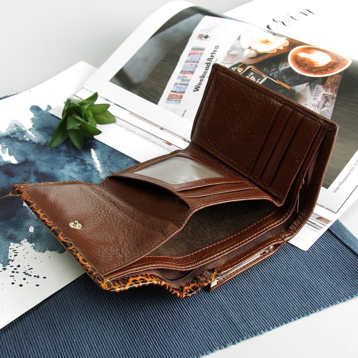 Кошелёк женский, 3 отдела, для карт, для монет, цвет коричневый