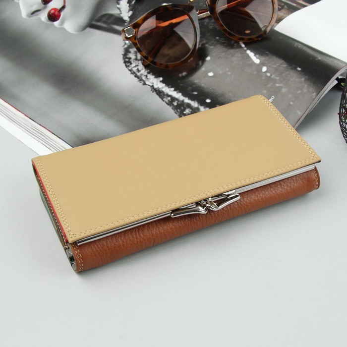 Кошелёк женский, 3 отдела, для карт, для монет, цвет коричневый/бежевый