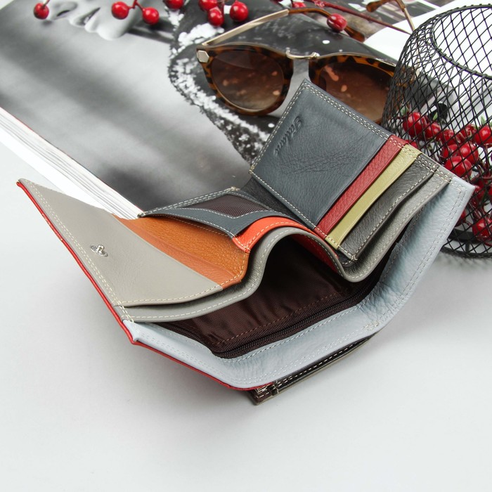 Кошелёк женский, 3 отдела, для карт, для монет, цвет красный/серый