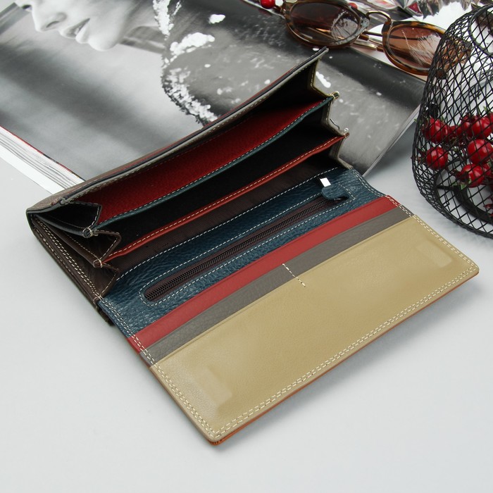 Кошелёк женский, 3 отдела, для карт, для монет, цвет рыжий/кофе