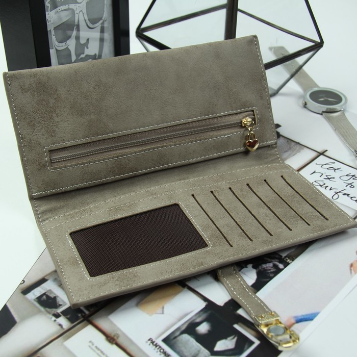 Кошелёк женский, 3 отдела, для карт, для монет, цвет серый