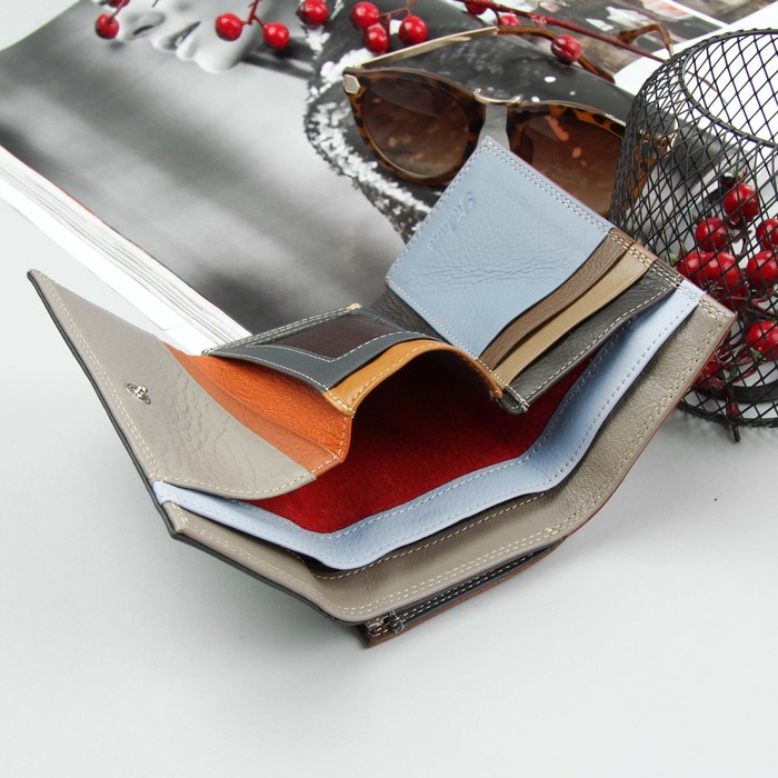 Кошелёк женский, 3 отдела, для карт, для монет, цвет синий/рыжий