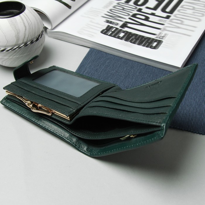 Кошелёк женский, 3 отдела, для карт, для монет, цвет зелёный