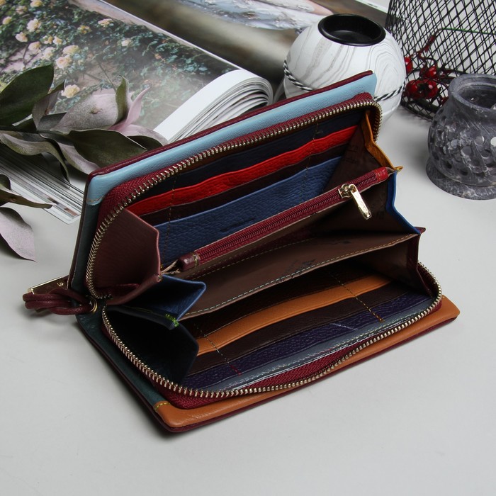 Кошелёк женский, 3 отдела, для карт, для монет, на молнии, наружный карман, цвет бордовый