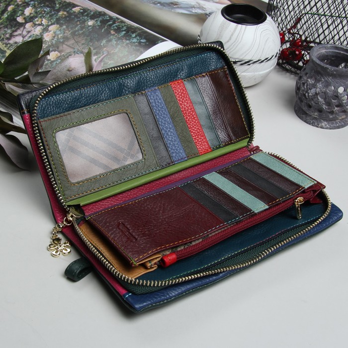 Кошелёк женский, 3 отдела, для карт, для монет, на молнии, наружный карман, цвет зелёный