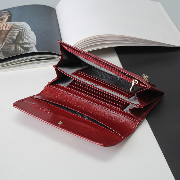 Кошелёк женский, 3 отдела, для карт, для монет, наружный карман, красный скат