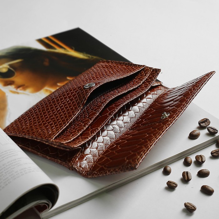Кошелёк женский, 3 отдела, для карт, для монет, питон, цвет карамель