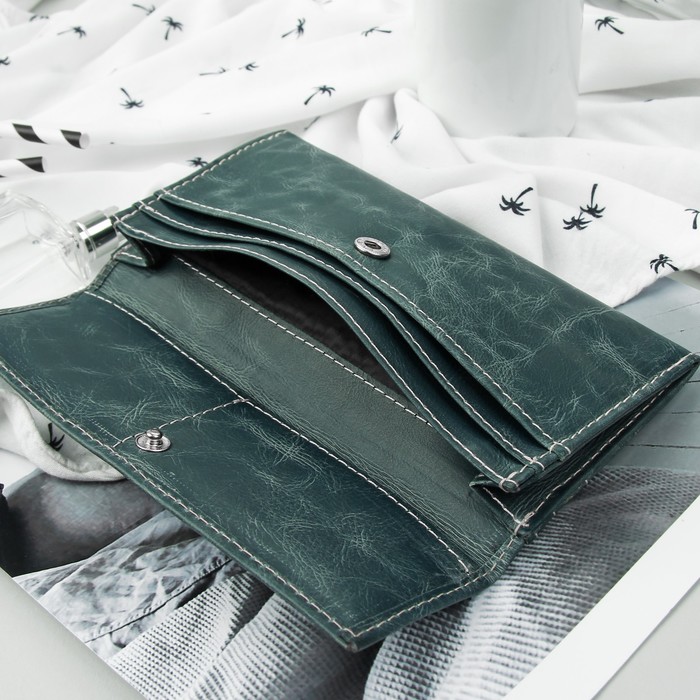 Кошелёк женский, 3 отдела, для карт, для монет, пулл-ап ментол
