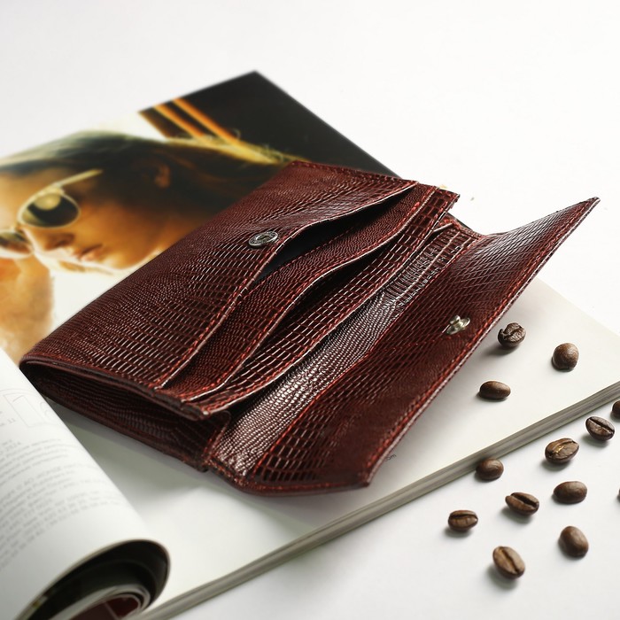 Кошелёк женский, 3 отдела, для карт, для монет, ящерица, цвет винный