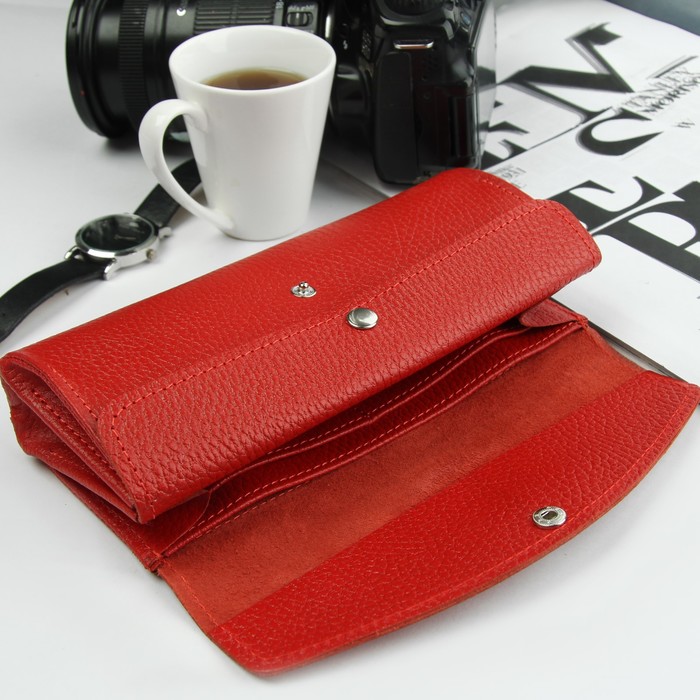 Кошелёк женский, 3 отдела, для карт, доллар, цвет алый