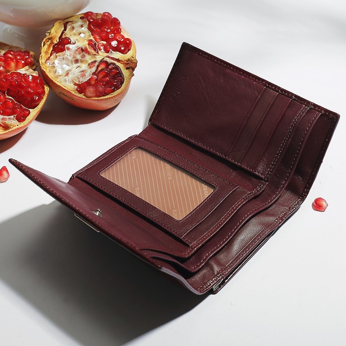 Кошелёк женский, 3 отдела, для карт, монет, цвет бордовый