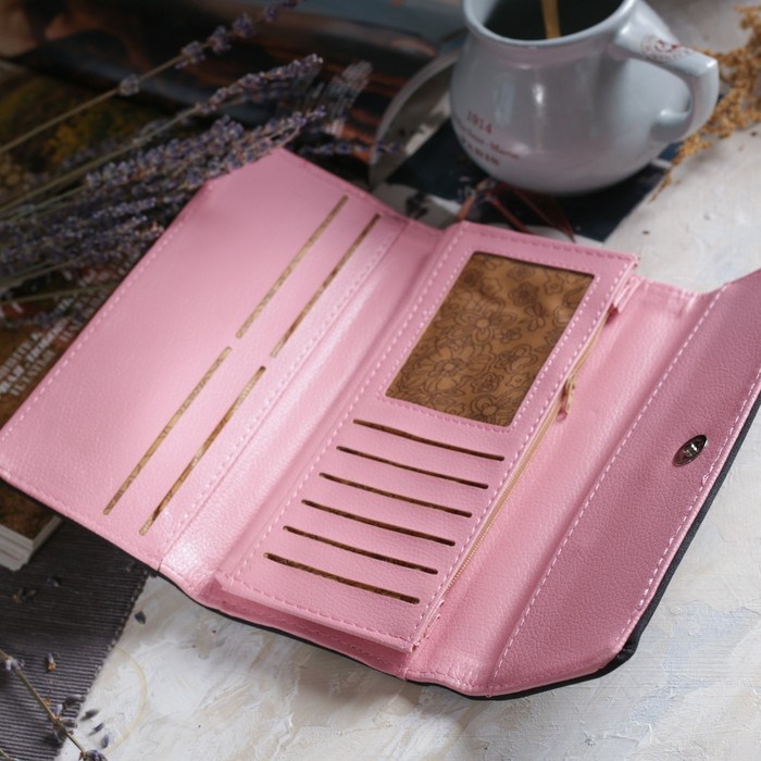 Кошелёк женский, 3 отдела, для карт, монет, цвет чёрный