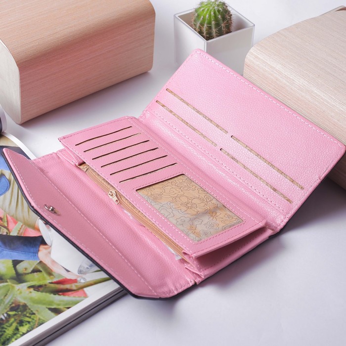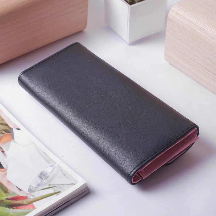 Кошелёк женский, 3 отдела, для карт, монет, цвет чёрный